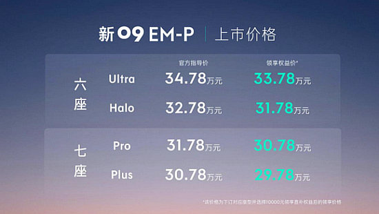 1月16日,領(lǐng)克中大型旗艦SUV新09EM-P正式上市,共推出六座版和七座版共4款車型,其中六座Ultra版和Halo版官方指導(dǎo)價(jià)分別為34.78萬和32.78萬元,七座Plus版和Pro版官方指導(dǎo)價(jià)分別為31.78萬和30.78萬元。目前大定通道已在領(lǐng)克官方商城正式開放,全國交付也在上市當(dāng)日正式開啟。