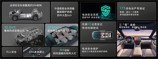 延續(xù)品牌基因,提供全域安全。新09EM-P延續(xù)了領(lǐng)克對安全的持續(xù)關(guān)注,基于全球安全標(biāo)準(zhǔn)最高的原生豪華車架構(gòu)SPA架構(gòu),以全球五星安全標(biāo)準(zhǔn)研發(fā)、以全域安全理念打造,提供更可靠的原生安全。新09EM-P擁有超長鋁合金前防撞梁、同級最長的L113長度和同級唯一的前后熱成型鋼縱梁結(jié)構(gòu),結(jié)合SPA架構(gòu)特有的安全保護(hù)技術(shù),全方位提升車輛安全保障。車身采用同級最高的35.1%整車熱成型鋼占比,強(qiáng)度更高。全系標(biāo)配中大型SUV中僅有的帶動態(tài)遮蔽功能前大燈,讓黑夜行車更有安全感;車輛翻滾保護(hù)系統(tǒng)和EMA緊急避讓輔助系統(tǒng)可在各種危急時(shí)刻為駕乘者提供保護(hù);以安全為第一前提的NOA駕駛輔助功能,讓駕乘更輕松安全。此外,新09EM-P還有三“0”健康座艙和電池安全系統(tǒng),真正實(shí)現(xiàn)結(jié)構(gòu)安全、設(shè)計(jì)安全、用料安全、三電安全的全域安全保障。