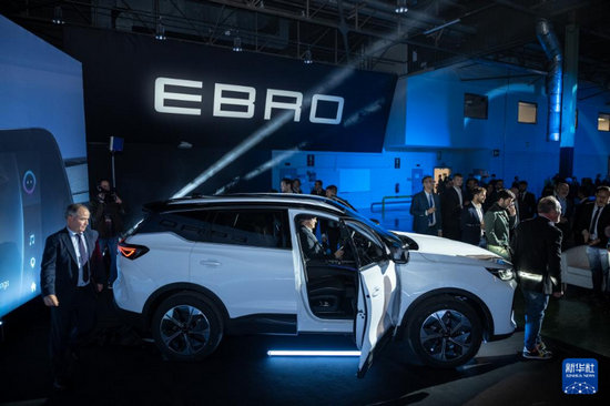 11月23日,在西班牙巴塞羅那自由貿(mào)易區(qū),中國(guó)汽車(chē)制造商奇瑞與西班牙埃布羅公司合資工廠正式啟動(dòng)首款車(chē)型的生產(chǎn)。 新華社發(fā)(胡安·戈薩攝)