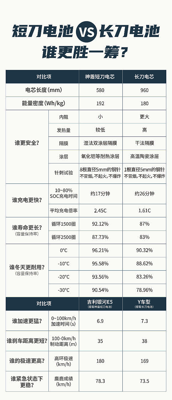神盾短刀電池致力于成為未來新能源汽車動力電池的最優(yōu)形態(tài)之一。得益于尺寸比長刀電池縮短約40%,內(nèi)阻更小、電芯發(fā)熱量較小,可有效降低本身存在的安全風險。此外,神盾短刀電池內(nèi)部采用濕法雙涂層隔膜,柔韌度更佳,在發(fā)生穿刺時不容易斷裂,且破損孔徑小,短路面積小。據(jù)悉,神盾短刀電池采用氧化鋁等耐熱涂層,類似在正負極間添加“隔離帶”,可以讓電池在進行更嚴苛的針刺時不易收縮,避免發(fā)生熱失控,隔膜熱收縮性能更優(yōu)。