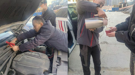 2025年2月2日,太原一位車主的車輛停放二十多天后無法啟動。救援人員迅速趕到現(xiàn)場,檢查后確定為電瓶虧電。搭電啟動后,救援人員現(xiàn)場檢查了油液及輪胎氣壓以確保車輛正常行駛,并邀請客戶到店進(jìn)一步檢測。當(dāng)天天氣寒冷,救援人員隨車準(zhǔn)備了熱水和小食,及時為車主送上暖心關(guān)懷。
