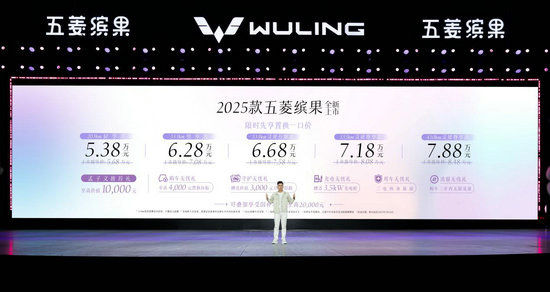 2025款五菱繽果共推出203km輕享款、333km悅享款、333km靈犀互聯(lián)款、333km靈犀尊享款及410km靈犀尊享款五款配置可供選擇,官方指導(dǎo)價(jià)為5.68萬(wàn)-8.48萬(wàn)元,為慶祝五菱繽果家族銷量突破五十萬(wàn),特推出感恩回饋:購(gòu)2025款五菱繽果可享限時(shí)先享置換一口價(jià)5.38萬(wàn)-7.88萬(wàn)元。此外,五菱官方推出至高價(jià)值10,000元的“孟子義推薦禮”,包括購(gòu)車無(wú)憂禮:至高4,000元置換補(bǔ)貼;守護(hù)無(wú)憂禮:贈(zèng)送價(jià)值3,000元3M太陽(yáng)膜;充電無(wú)憂禮:贈(zèng)送3.5kW充電樁;用車無(wú)憂禮:三電終身質(zhì)保;流量無(wú)憂禮:購(gòu)車后享受三年無(wú)限流量;此外還可疊加享受至高20,000元的國(guó)家/地方補(bǔ)貼。廣大用戶可通過(guò)五菱汽車APP/小程序等線上渠道下訂。