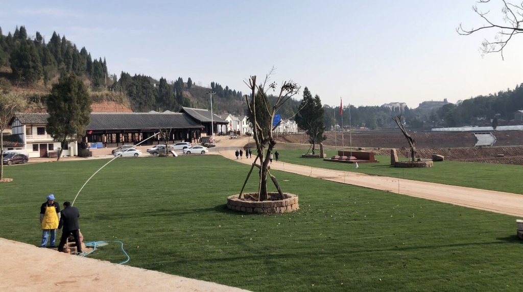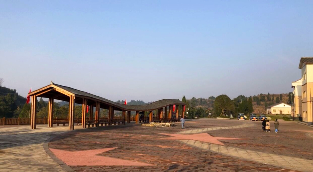 遠(yuǎn)眺“中國(guó)·四川紅軍第一村”項(xiàng)目紅軍廣場(chǎng)
