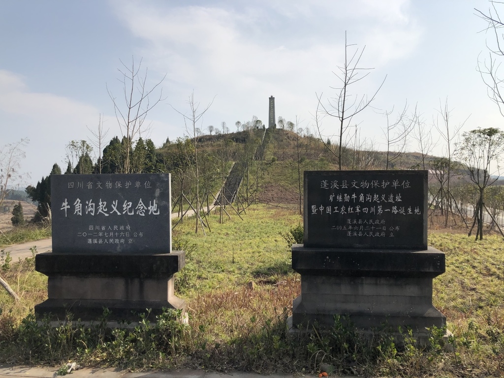 1990年4月,徐向前元帥為遺址題寫“曠繼勛牛角溝起義紀(jì)念碑”。2019年,為紀(jì)念蓬溪起義90周年,蓬溪縣委、縣政府在遺址處重建了徐向前元帥題寫的“曠繼勛牛角溝起義紀(jì)念碑”,豎起了“四川紅軍第一村”標(biāo)志牌。目前,遺址已經(jīng)成為人們緬懷革命先烈豐功偉績、開展黨性教育和學(xué)習(xí)鄉(xiāng)村振興經(jīng)驗的重要基地。