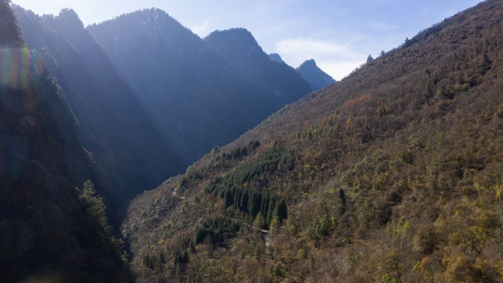 大熊貓國家公園北川小寨子溝片區(qū)群山一角(2021年11月23日無人機攝)。 新華社記者 江宏景 攝