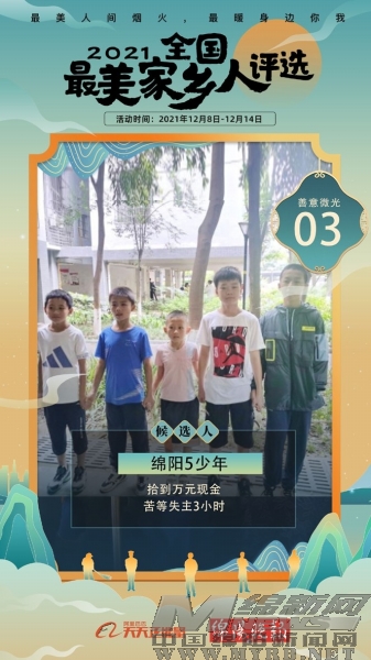 綿陽新聞網訊 12月8日,記者從全國“最美家鄉(xiāng)人”評選組委會了解到,2021全國“最美家鄉(xiāng)人”評選已于今日正式開啟,網絡投票通道同步開通。經過本報與阿里巴巴天天正能量共同評估,綿陽的王楊梅和戴一攀等5位同學的最美故事進入全國“最美家鄉(xiāng)人”候選。