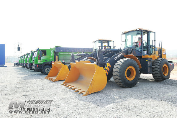 在四川省2021年第一季度重大項目集中開工綿陽分會場現(xiàn)場,工程車輛蓄勢待發(fā)。(綿陽日報社融媒體記者 賴杰 攝)