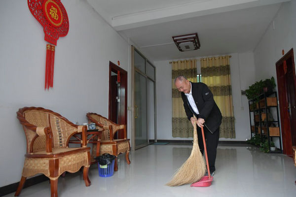 于都縣梓山鎮(zhèn)潭頭村村民孫觀發(fā)正在自家的民宿內打掃衛(wèi)生(4月7日攝)。新華社記者 彭昭之 攝