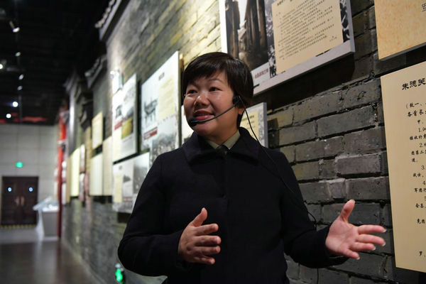 在中央紅軍長征出發(fā)紀念館,副館長鐘敏正在給參觀的游客介紹長征的歷史(4月6日攝)。新華社記者 彭昭之 攝