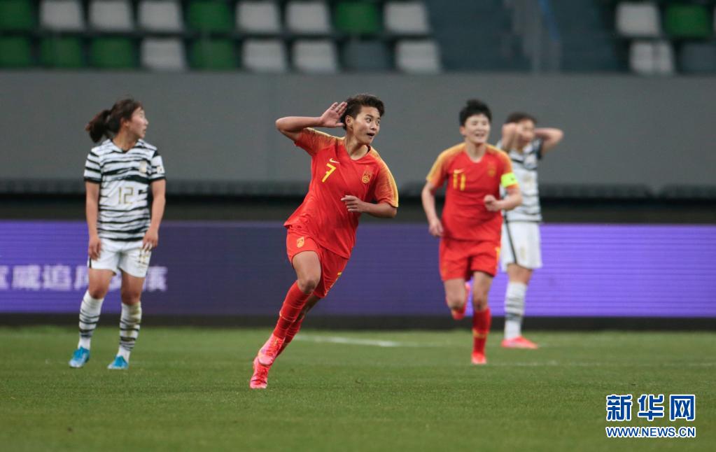 4月13日,中國(guó)隊(duì)球員王霜在比賽中慶祝進(jìn)球。
