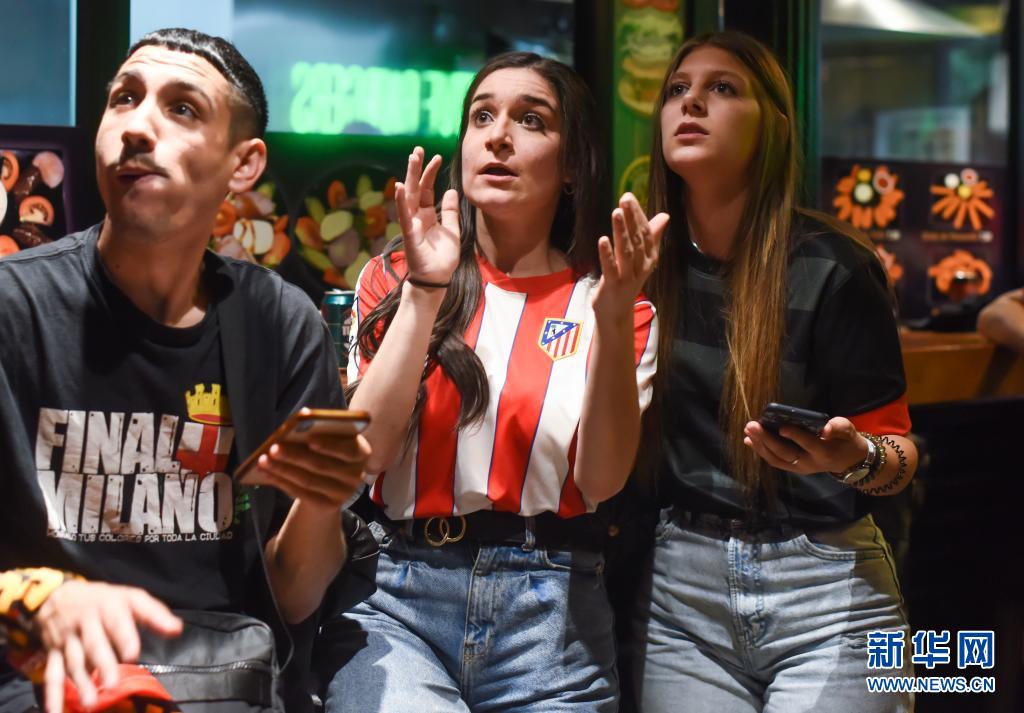 5月22日,馬德里競技隊球迷在馬德里一家酒吧內(nèi)觀看比賽。
