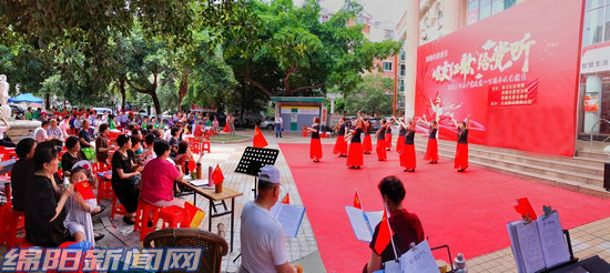 當天下午,盡管天氣十分炎熱,小區(qū)居民早早就來到小區(qū)中心廣場,人人手里舞動著國旗、黨旗,臉上洋溢著幸福的笑容。合唱《沒有共產(chǎn)黨就沒有新中國》、女聲獨唱《唱支山歌給黨聽》《最美的歌兒獻給媽媽》、歌伴舞《春天的故事》等精彩演出,贏得現(xiàn)場陣陣掌聲。觀眾揮動著黨旗互動大聯(lián)唱,表達對黨深深的愛,感恩在中國共產(chǎn)黨的領(lǐng)導(dǎo)下過上了幸福美好的生活。(綿陽日報社融媒體記者 任明勇 文/圖)