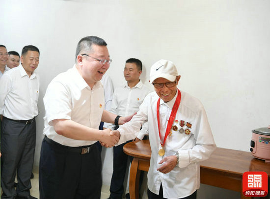90歲高齡的老黨員周世貴有65年黨齡,曾參加過抗美援朝戰(zhàn)爭,入伍期間榮獲二等功1次、三等功2次。看到老人身體硬朗、精神矍鑠,元方十分欣慰,并與他一起追憶戰(zhàn)爭年代的崢嶸歲月,暢談新時代的幸福生活。得知黨史學習教育期間,周世貴還作為普明街道“五老”特色宣講隊成員,開展了多場抗美援朝紅色故事宣講活動時,元方表示深深敬意。希望周世貴繼續(xù)講好黨的故事,引導帶動身邊黨員群眾特別是年輕一代堅定理想信念、勇?lián)鷼v史使命、傳承紅色基因,為綿陽發(fā)展貢獻更多智慧和力量。