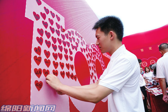 游仙區(qū)游仙街道組織轄區(qū)黨員干部和群眾收看慶祝中國共產(chǎn)黨成立100周年大會(huì)直播,并為黨員送上了“紅色能量包”。黨員們?cè)诤灥綁ι腺N上小紅心,表示紅心向黨。(綿陽日?qǐng)?bào)社融媒體記者 文宇 攝)