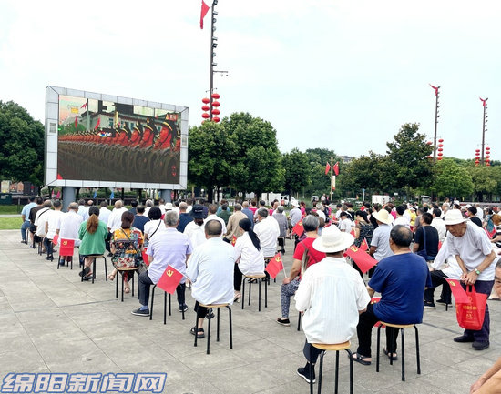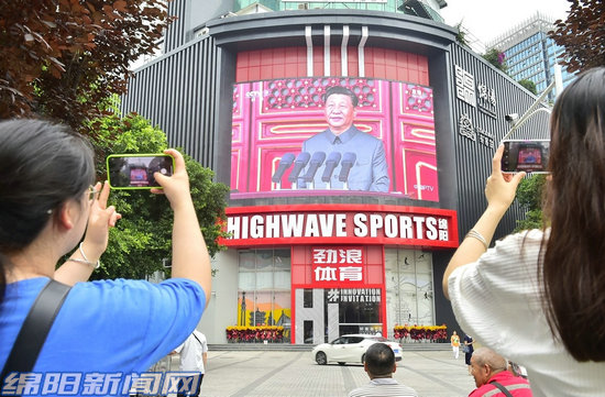 市民在戶外大屏觀看慶祝大會(huì)直播(綿陽日?qǐng)?bào)社融媒體記者 王勇 攝)