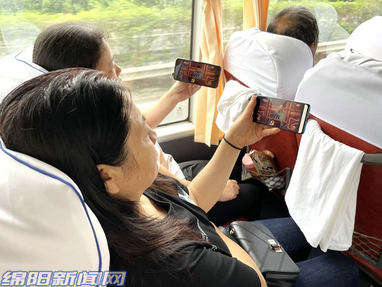 出差途中幾名黨員通過手機(jī)觀看慶祝大會(huì)直播(綿陽日?qǐng)?bào)社融媒體記者 劉佳 攝)
