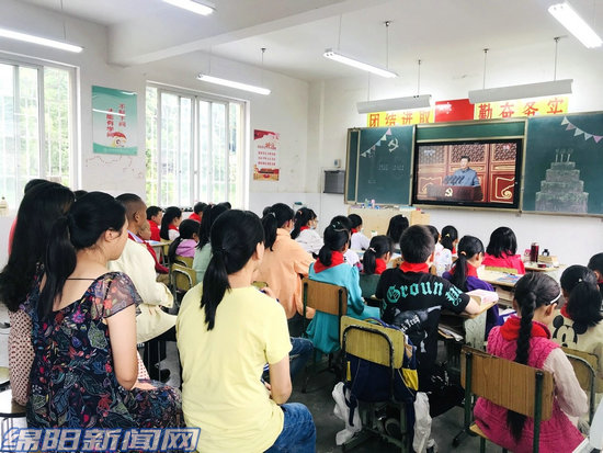 平武一小學(xué)組織收看慶祝大會(huì)直播(綿陽日?qǐng)?bào)社融媒體記者 任露瀟 攝)