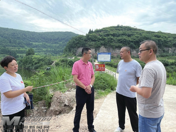 龍臺村干部在水庫整治現(xiàn)場協(xié)調(diào)解決問題