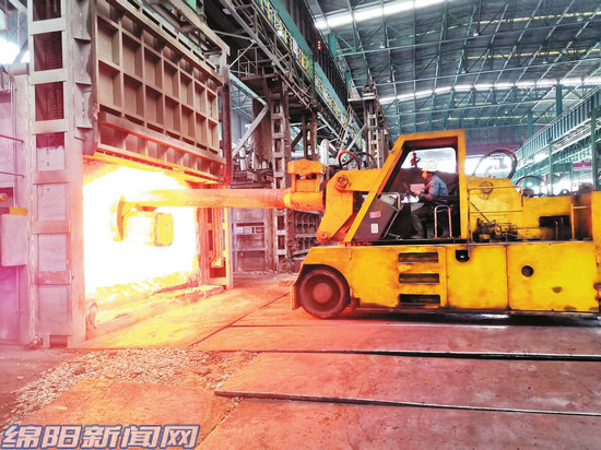 鍛軋廠鍛造鋼坯出爐(蘭鵬博 攝)