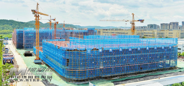 近日,記者在經(jīng)開區(qū)先進制造業(yè)服務(wù)中心項目建設(shè)現(xiàn)場了解到,目前項目建設(shè)已完成總工程量的70%,其中1#廠房完成四層部分梁板柱支模,2和3#廠房、配套用房主體已封頂,研發(fā)試驗廠房已完成三層部分梁板柱支模。