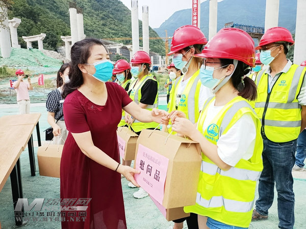 市交通運輸局相關負責人一行來到九綿高速LJ27標工地,為高溫下堅守在一線的建設者送上菊花茶、綠豆、大棗、冰糖、銀耳等防暑降溫大禮包。感謝他們不畏高溫酷暑,堅守工作崗位,為追趕項目進度加班加點,為綿陽城市建設貢獻力量。