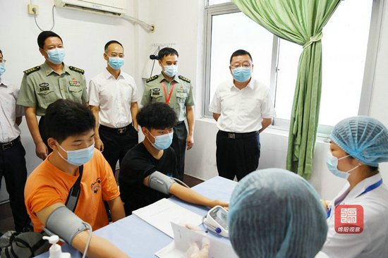 綿陽(yáng)新聞網(wǎng)訊 8月12日,市委副書(shū)記、市長(zhǎng)、市征兵工作領(lǐng)導(dǎo)小組組長(zhǎng)元方巡查2021年下半年征兵體檢工作,看望體檢醫(yī)護(hù)人員和參檢青年。