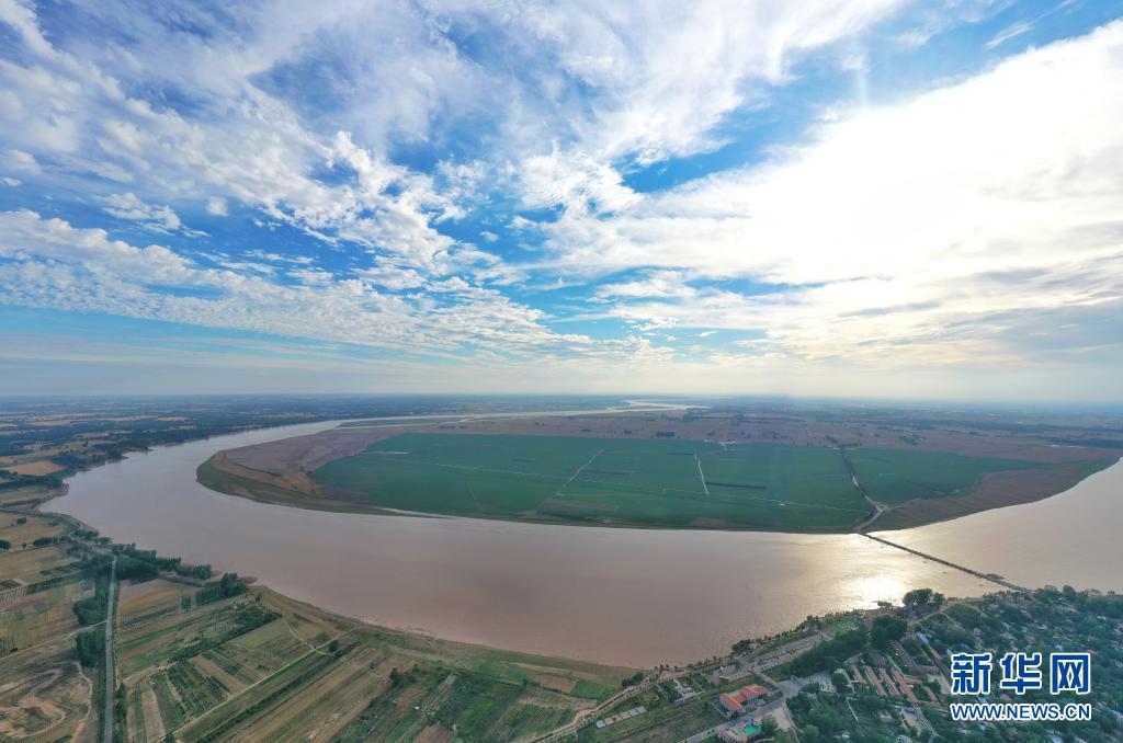 這是6月18日在河南省蘭考縣黃河灣風(fēng)景區(qū)拍攝的黃河(無人機(jī)照片)。新華社發(fā)(李金雷 攝)