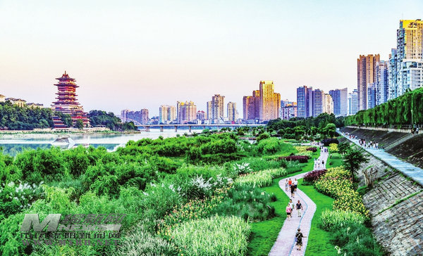 創(chuàng)新活力涌動的綿陽城風(fēng)光秀美,位于市區(qū)的越王樓與現(xiàn)代都市景象融為一體。(蒲滔 攝)