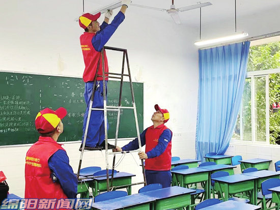 “電管家”檢修維護(hù)學(xué)校用電設(shè)施設(shè)備(圖片由國(guó)網(wǎng)綿陽(yáng)供電公司提供)