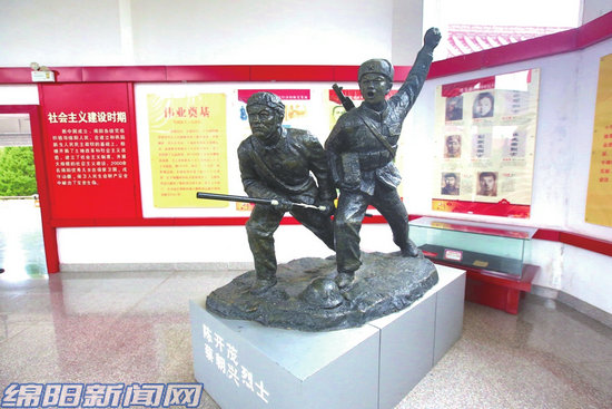 綿陽(yáng)市烈士紀(jì)念館內(nèi)的陳開(kāi)茂、蔡朝興烈士塑像