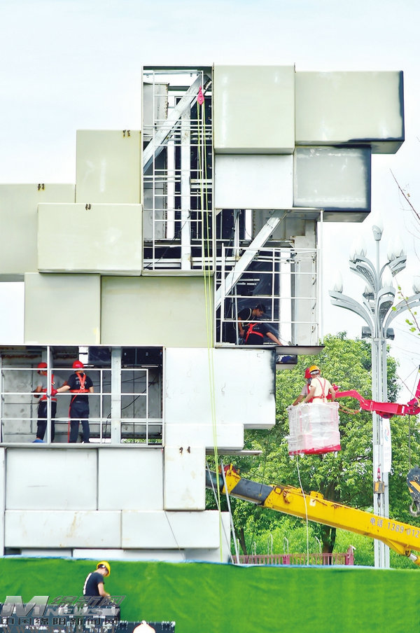 科技感十足的網(wǎng)紅打卡區(qū)到底長(zhǎng)啥樣?9月6日,記者在九洲體育館北門旗桿處看到,網(wǎng)紅打卡區(qū)互動(dòng)大屏已安裝完畢,正在進(jìn)行最后調(diào)試。兩側(cè)還有印有越王樓以及城市科技元素的圖片立柱與之呼應(yīng)。