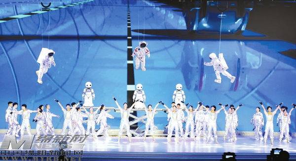 于敏、朱光亞、錢學(xué)森、鄧稼先……伴隨著《祖國(guó)不會(huì)忘記你》的樂聲響起,舞臺(tái)上的青少年們放聲高歌,而他們背后的屏幕上“跳”出一個(gè)個(gè)科學(xué)家的名字,他們?yōu)樽鎳?guó)建設(shè)鞠躬盡瘁的場(chǎng)景歷歷在目,令人動(dòng)容。隨后,三個(gè)身著宇航服的“宇航員”從天而降,漫步太空,同時(shí)三個(gè)機(jī)器人隨著音樂舞動(dòng)起來,“科技范兒”十足。