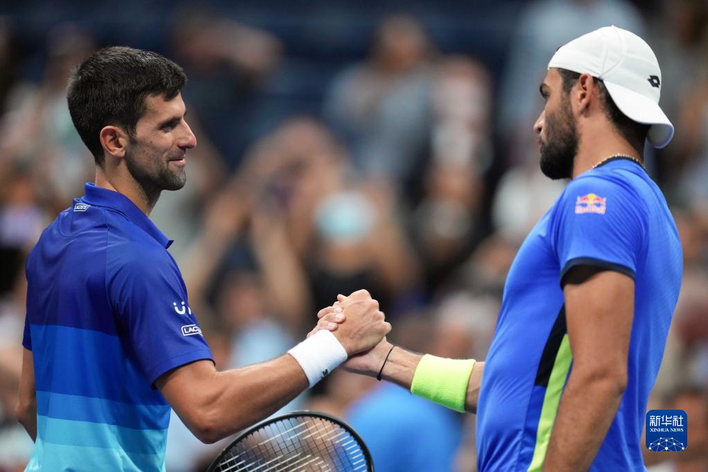 9月8日,塞爾維亞選手焦科維奇(左)與意大利選手貝雷蒂尼在賽后致意。