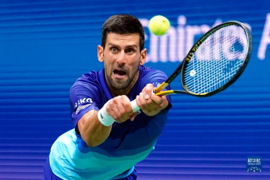 9月8日,塞爾維亞選手焦科維奇在比賽中回球。