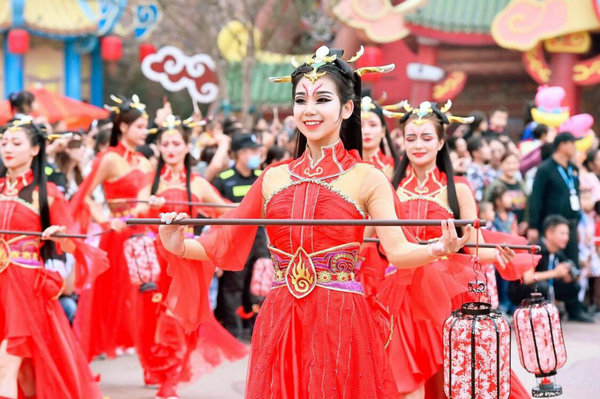 演藝中最具代表性當(dāng)屬“巨馬巡游”,震撼的大型機械巨馬,聲勢浩大、繽紛奪目的大型花車巡游,科技感十足,又極具傳統(tǒng)文化特色,和家人一起穿越古今,體驗一場全沉浸式的視覺盛宴。據(jù)了解,該巡游表演不僅融合了中國傳統(tǒng)雜技和風(fēng)情舞蹈,還加了特效表演等多種元素于一體,以英雄慶祝凱旋歸來情節(jié)演藝蕩氣回腸的蜀漢文化。