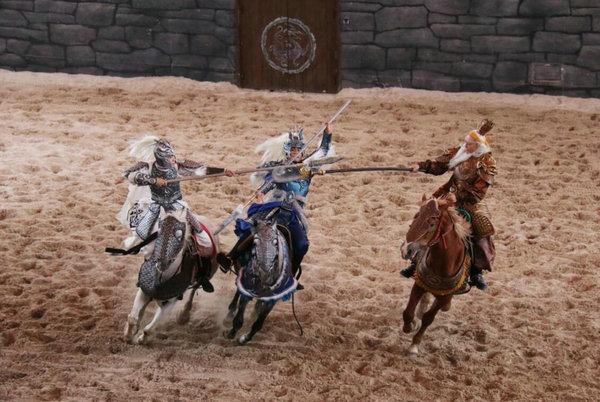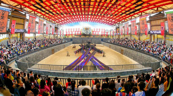 山河錦繡,駿馬馳騁,英雄集結(jié),虎嘯龍吟。在氣勢恢宏的臥龍校場中,驚心動魄的三國故事正在上演。據(jù)悉,《馬秀三國》是全國首創(chuàng)以三國為題材的史詩級馬術(shù)表演,不僅生動展現(xiàn)五虎上將與寶馬名駒的沙場英姿,帶領(lǐng)你縱橫金戈鐵馬的烽煙戰(zhàn)陣,更能感受三國時期的戰(zhàn)火紛飛和英雄壯歌。