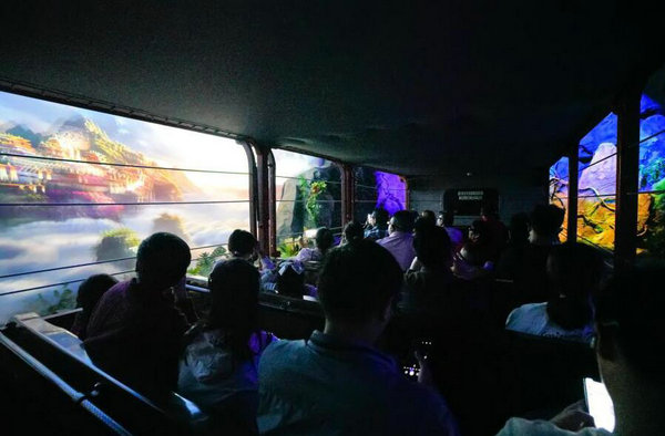 除了能觀看精彩演藝之外,記者還來到“藏羌秘境區(qū)”,體驗了一次投資過億的超大型自然體驗類乘騎王牌項目《天路歷險》,我們乘坐VR軌道列車在真實場景與高科技影音藝術(shù)間穿梭,通過聲、光、電、3D到6D的立體展現(xiàn),感受從川西到拉薩天路歷險的驚心動魄,帶來身臨其境的絕妙感受。