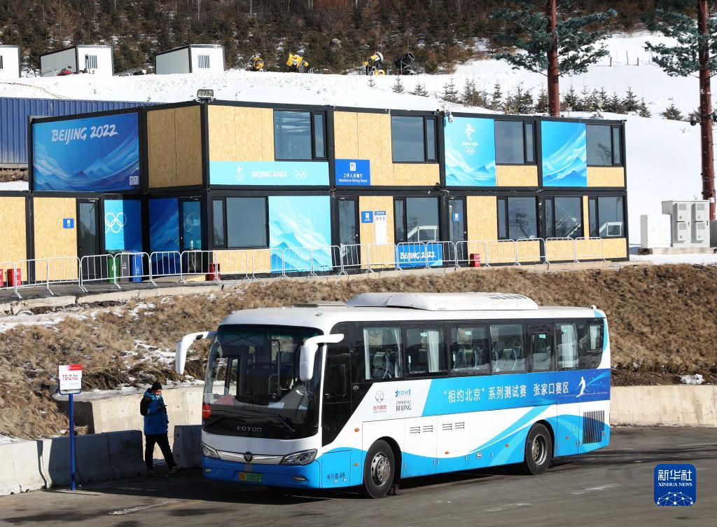2022年1月6日,在張家口市崇禮云頂滑雪公園,一名工作人員準(zhǔn)備乘坐氫燃料大巴出行。新華社記者 楊世堯 攝