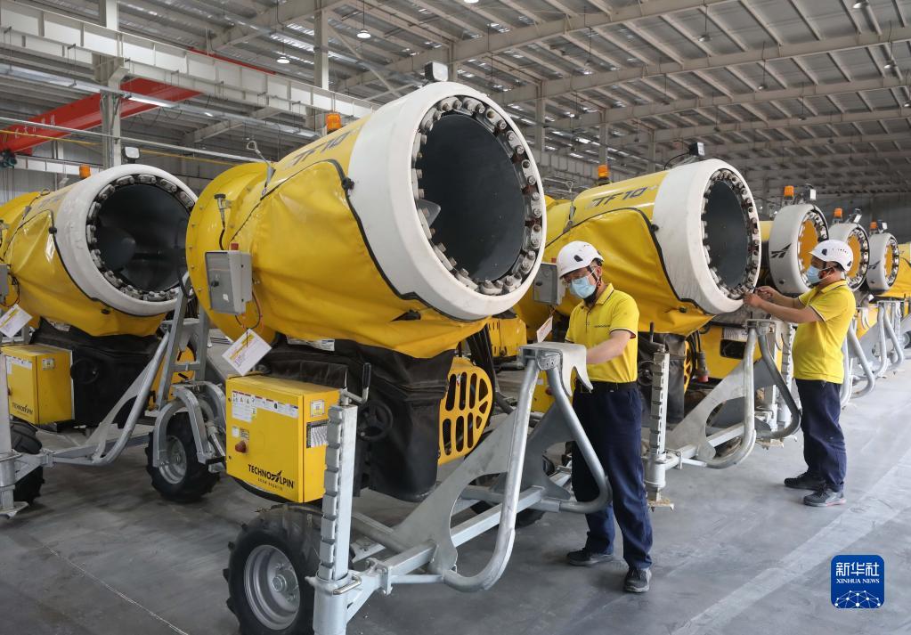 這是張家口高新區(qū)冰雪運(yùn)動(dòng)裝備產(chǎn)業(yè)園內(nèi)一家冰雪設(shè)備企業(yè)的工人在車(chē)間查驗(yàn)造雪機(jī)質(zhì)量(2021年6月23日攝)。新華社記者 楊世堯 攝