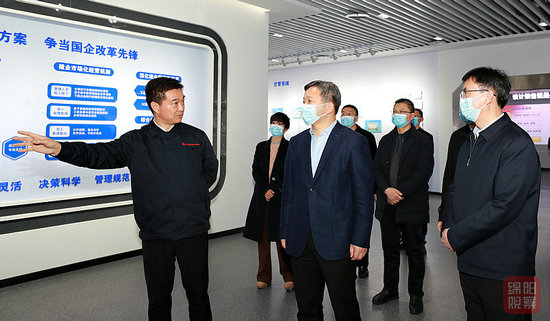 中國航發(fā)渦輪院院長(zhǎng)楊魯峰,市領(lǐng)導(dǎo)黃朝陽、梁磊、姚永紅、劉海昌,有關(guān)區(qū)、部門負(fù)責(zé)人等參加調(diào)研。(綿陽日?qǐng)?bào)社融媒體記者 劉鑫 安達(dá)福/文 賴杰/圖)
