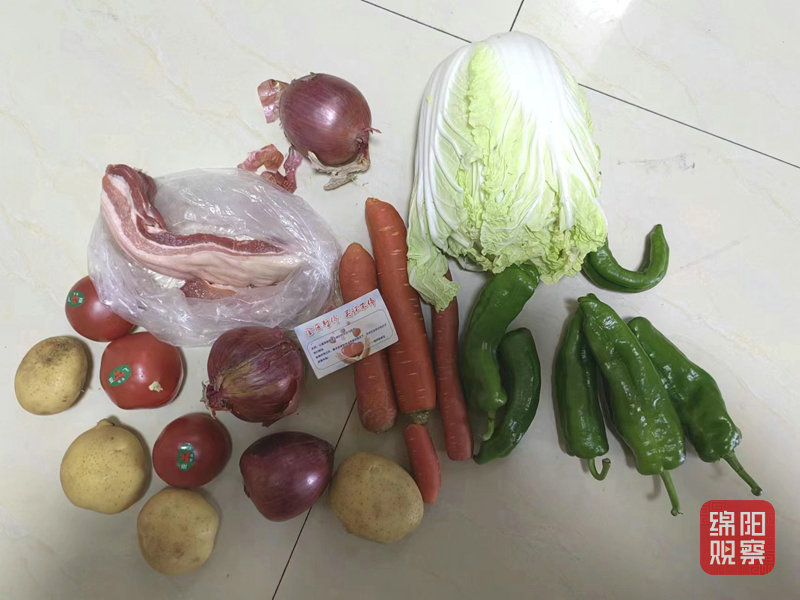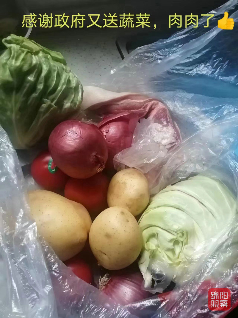 “政府這邊在1號和5號配送了兩次。”鄧小蘭說,配送的生活保障物資有西紅柿、土豆、白菜、洋蔥、胡蘿卜、青椒和鮮肉,“太旺實(shí)了,塑料袋裹得嚴(yán)嚴(yán)實(shí)實(shí)的,光肉都有兩斤多。”