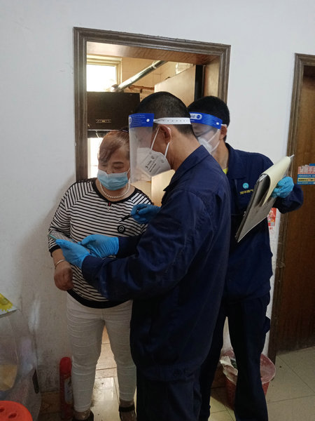 維修員劉毅接到派單后立即趕往現(xiàn)場,穿戴好防護服、面罩、口罩、手套等防護用品后進入客戶家中進行排查。查明原因為表具損壞后,立即為客戶免費更換,灶具火焰重新升騰。劉毅目光堅定地說:“考慮到嚴格的防疫要求,工作相比平時更有難度,如遇中高風險區(qū)域的燃氣設施設備故障,我和同事必須加強防護,但穿著防護服對操作帶來一定約束。即使這樣,我們依然快速解決用戶燃氣問題,確保用戶吃上熱飯熱菜。”