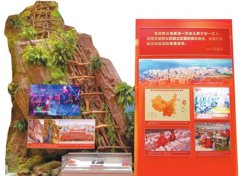 金秋北京,“奮進(jìn)新時代”主題成就展,展廳內(nèi)三張穿越時空的對比照吸引了人們的目光:第一張,垂直般攀附在懸崖上的藤梯令人心驚膽戰(zhàn);第二張,結(jié)實牢靠的鋼梯帶給攀緣者安全出行;第三張,易地扶貧搬遷群眾用上了祖祖輩輩想都想不到的樓梯。