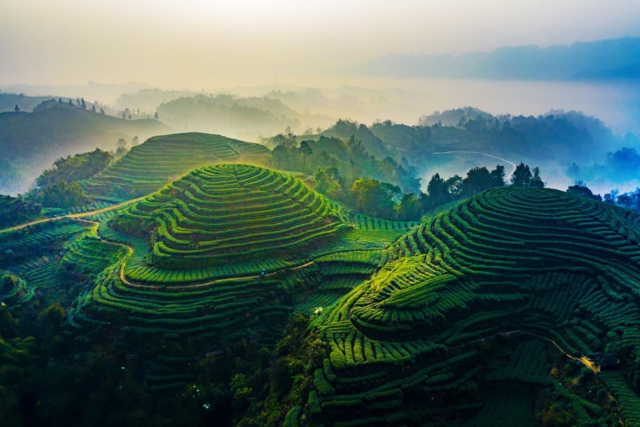 念好“優(yōu)、綠、特、強(qiáng)、新、實”六字經(jīng),大力培育川糧油、川菜、川茶等十大優(yōu)勢特色產(chǎn)業(yè),進(jìn)一步打響“川字號”品牌。圖為四川省雅安市名山茶園。