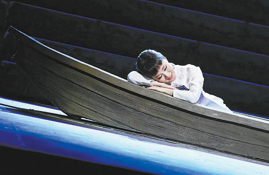 除了核心人物翠翠,其他角色的呈現(xiàn)同樣鮮活生動,比如著名男中音歌唱家孫礫飾演的老船夫,他古道熱腸,看似瀟灑迂闊,但內(nèi)心始終潛藏著女兒去世留下的傷痛。孫礫將他的掙扎和悲苦表現(xiàn)得相當動人;王傳亮飾演的儺送活潑幽默,韓鈞宇飾演的天保沉穩(wěn)隱忍,兩兄弟的性格形成了鮮明的對比……此外,在本輪演出中,李晶晶、耿哲、劉怡然等另一組主演陣容也獻上了精彩表演。
