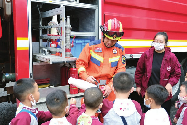 “消防員叔叔的救援本領(lǐng)是怎樣練成的?”孩子們非常好奇。隨著指揮員一聲令下,消防員憑借一根繩索在短短幾十秒內(nèi)攀爬上四樓,孩子們一個個被驚得目瞪口呆,“就像電影里的‘蜘蛛俠’,一下子就上去了……”孩子們對消防員叔叔的“超能力”表示驚訝和贊嘆。