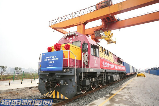中歐班列“成渝號(hào)”從綿陽(yáng)皂角鋪物流基地出發(fā)