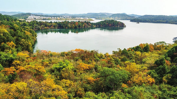 藍(lán)天、碧水、紅葉……初冬時(shí)節(jié),風(fēng)景正好!走進(jìn)仙海,湖光山色相映成輝,讓人陶醉其中。