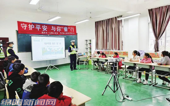 活動現(xiàn)場,來自平武縣公安局交警大隊的民警向?qū)W生講解常見的交通指揮手勢,詳細(xì)講解亂穿馬路、道路上追逐嬉戲、乘車不系安全帶、把頭伸向窗外等交通違法行為的危害性。通過交通科普宣傳視頻,為孩子們講解了交通安全的知識點,時刻提醒同學(xué)們上放學(xué)安全過馬路的重要性。“我一定會遵守交通法律法規(guī),長大以后也要當(dāng)一名交警。”孩子們紛紛說,他們要將自己所學(xué)的交通安全知識分享給家人,增強(qiáng)交通安全觀念。