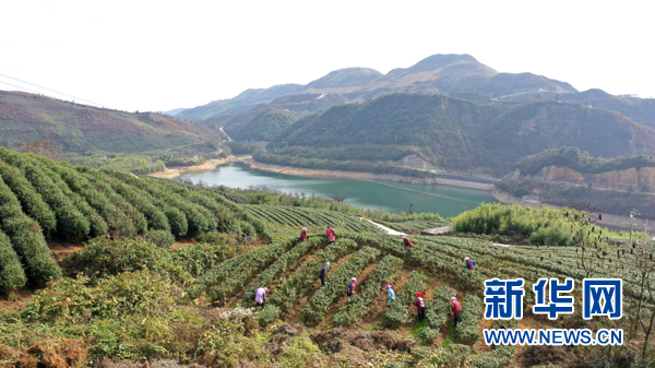 村民在毛尖鎮(zhèn)螺螄殼茶山上管護茶園。新華網(wǎng) 周遠鋼 攝